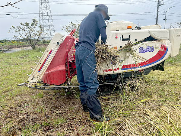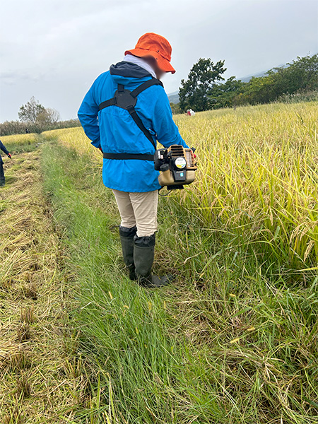 ▼稲刈りと並行して、畦の草刈り作業も行いました。