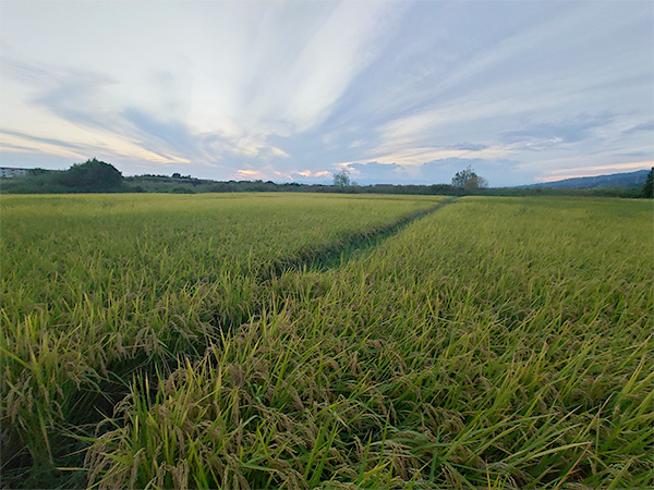 田んぼ一面の稲穂が黄金色に色づき、季節の移ろいを感じる頃です。